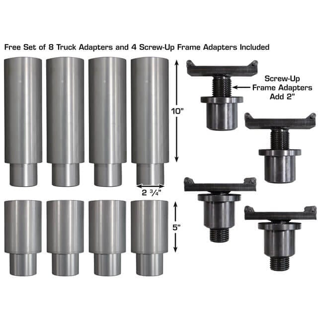 - Free 8 Piece Truck Adapter Set and 4 Screw-Up Frame Adapters