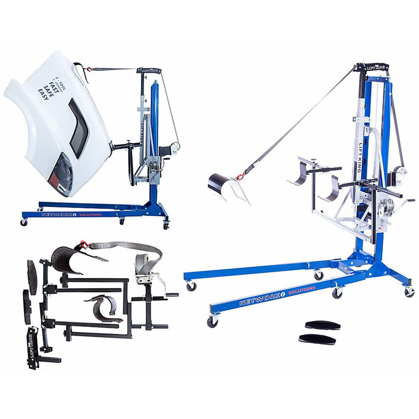 The Lift King - Heavy Duty package includes the Main Component, allowing you to remove and install Semi Hoods safely and efficiently with one operator. The included Semi Hood Attachment allows additional tilting mobility for body repair and painting.
