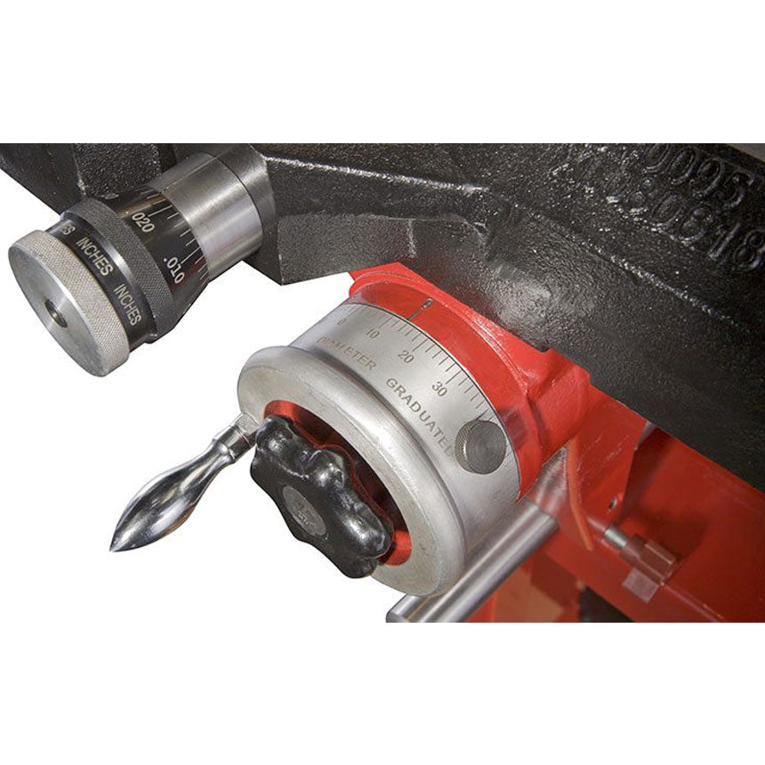 - Infinitely variable spindle and cross feed speed settings allow for quick rough and precision finish cuts. Simple ergonomic controls are designed for minimal operator movement.